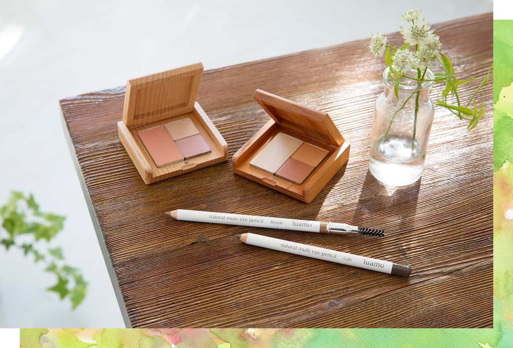 ナチュラル・オーガニックコスメの世界的な第三者認証であるNATRUE 認証を取得したルアモのメイクアップ。